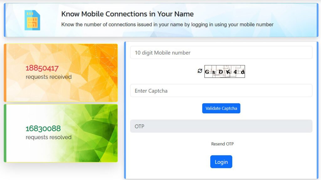 आपके मोबाइल नंबर पर एक ओटीपी जाता है। उसको आप लोगों को भर देना है और उसके बाद कैप्चा कोड भर देना है, जैसे ही आप लोग भर देंगे सा आप login वाले बटन पर क्लिक कर देना है। उसके बाद आप लोगों को आपके सामने आपके सारे मोबाइल नंबर दिखने लगेंगे, उस आप लोग वहां पर जाकर के देख सकते हैं कि आपका नाम पर कितने मोबाइल नंबर रजिस्टर हैं और अगर आप लोगों को वहां पर कोई ऐसा सिम कार्ड दिखता है, जो कि आपका नहीं है तो आप लोगों को उसमें ऑप्शन दिया रहता है, कि आप लोग उस सिम कार्ड को बंद कर सकते हैं। बंद करने के लिए थोड़ा सा ध्यान से आप लोग करें नहीं तो आप लोगों को आगे चलकर दिक्कत हो सकती है। तो सिम कार्ड इस तरीके से आप लोग अपने चेक कर सकते हैं, कि आप लोगों के नाम पर कितने सिम कार्ड एक्टिवेट हैं।